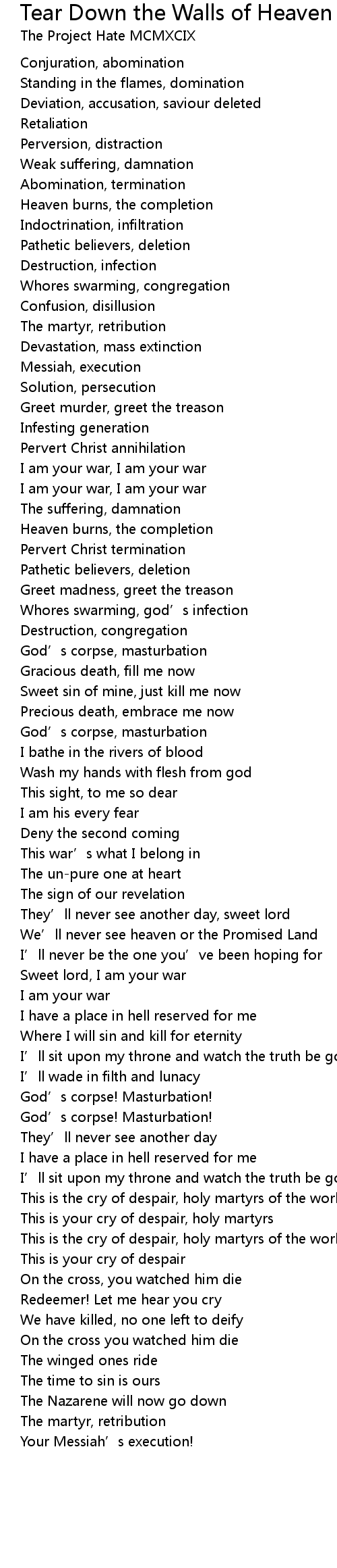 | Whores swarming, god’s infection | |