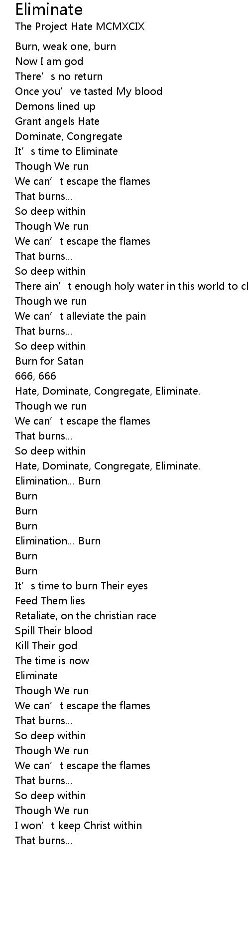 | Hate, Dominate, Congregate, Eliminate. | |