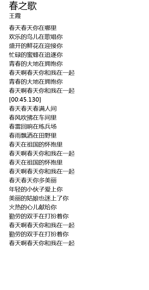 | [01:56.350] | 春天啊春天你和我在一起 |