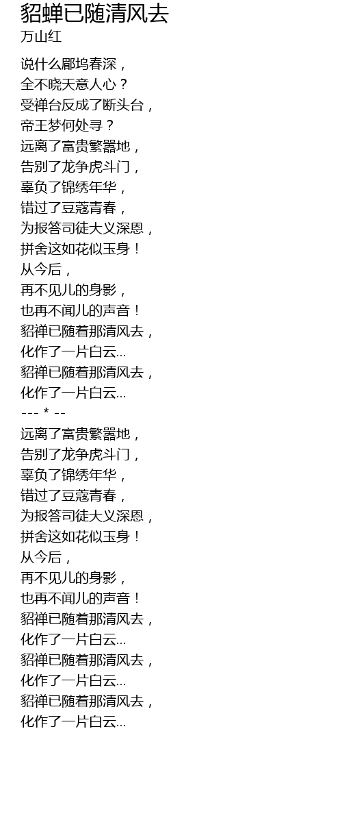 | [02:00.390] | diāo chán yǐ suí zhe nà qīng fēng qù, |