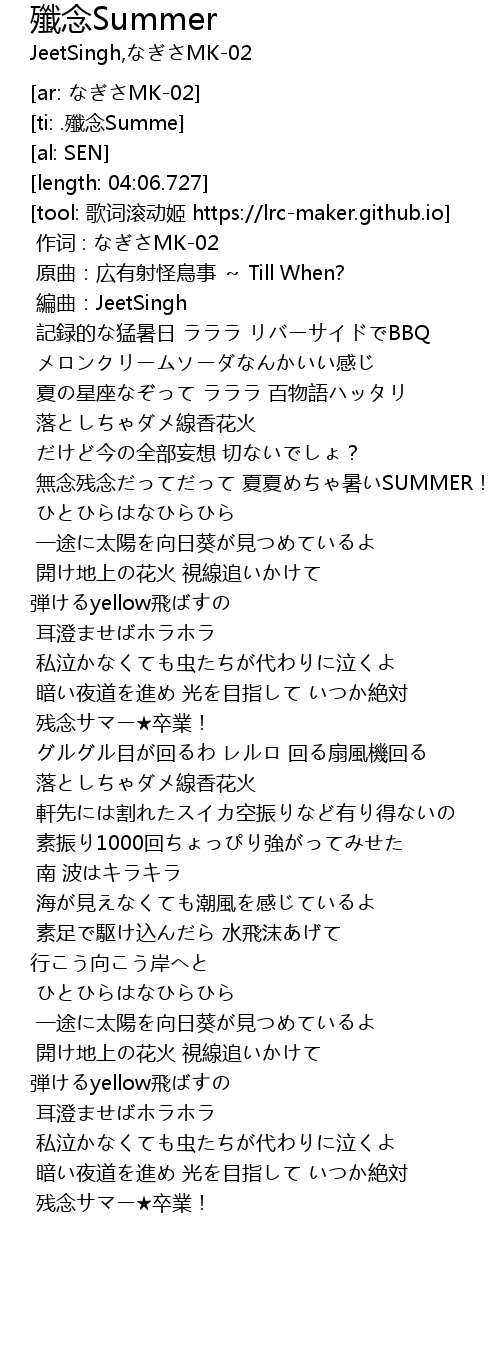 | [00:43.947] | wú niàn cán niàn xià xià shǔ SUMMER! |