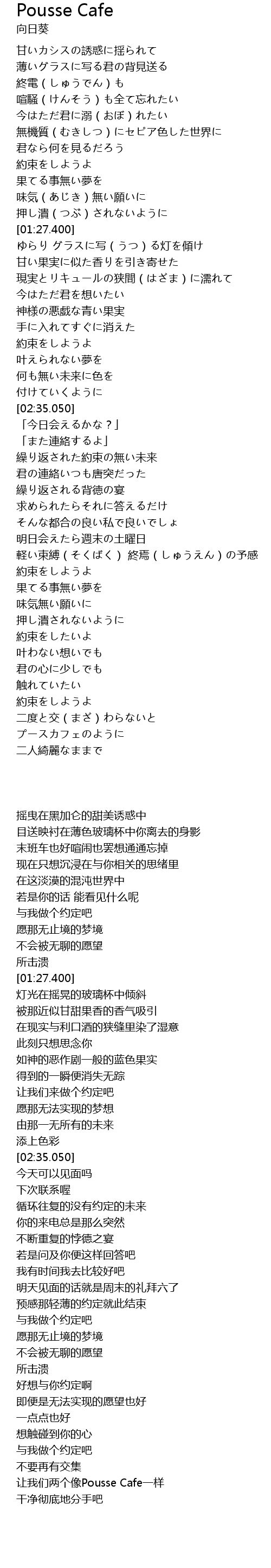 | [01:56.550] | 現実とリキュールの狭間(はざま)に濡れて |