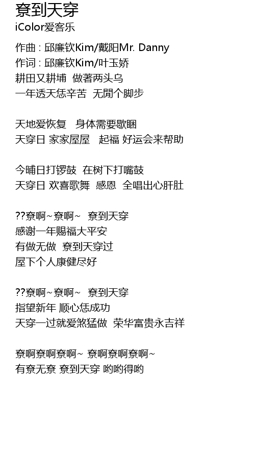| 作词 : 邱廉钦Kim/叶玉娇 | |