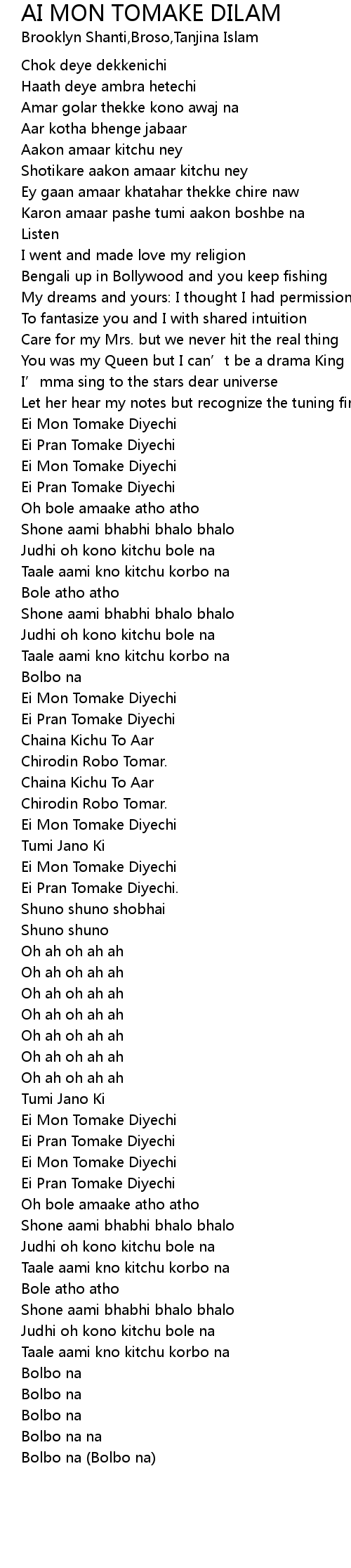| [03:16.22] | Taale aami kno kitchu korbo na |