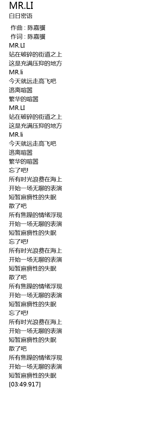 | [00:01.000] | 作词 : 陈嘉骥 |