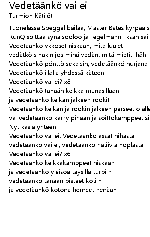| Vedet nk vai ei, Vedet nk ss t hihasta | |