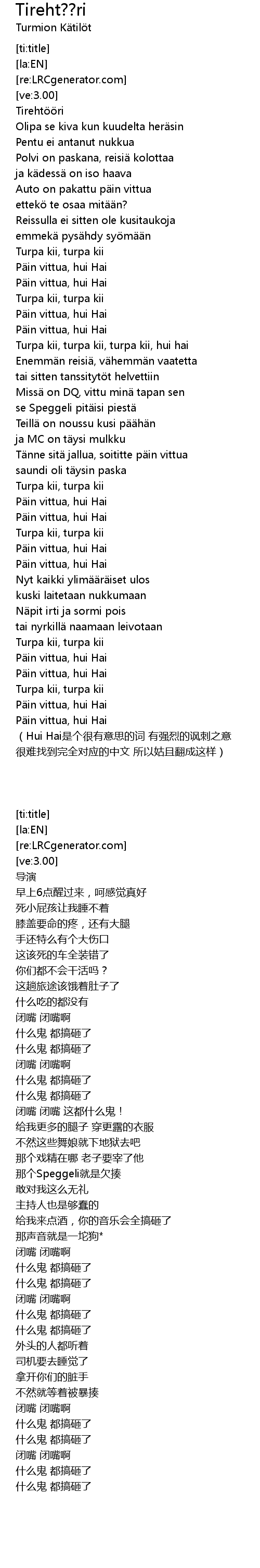 | [02:37.30] | Nyt kaikki ylim r iset ulos |