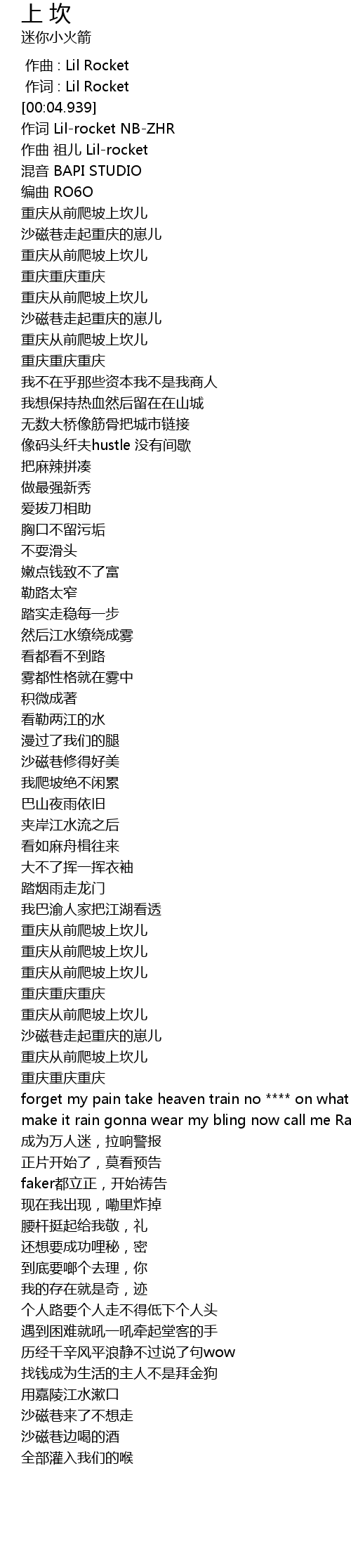 | [01:32.962] | chóng qìng cóng qián pá pō shàng kǎn ér |