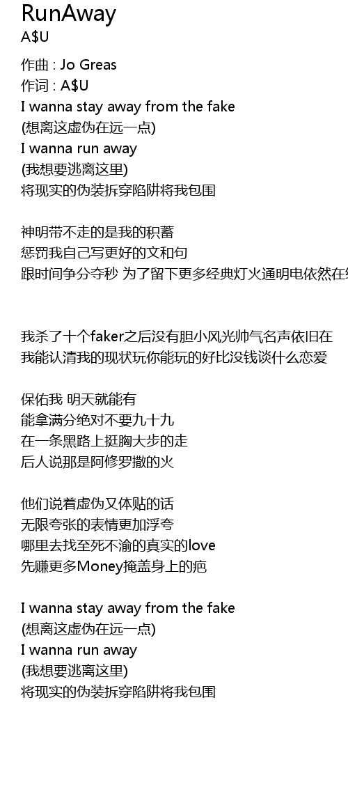 | 作词 : A$U | |
