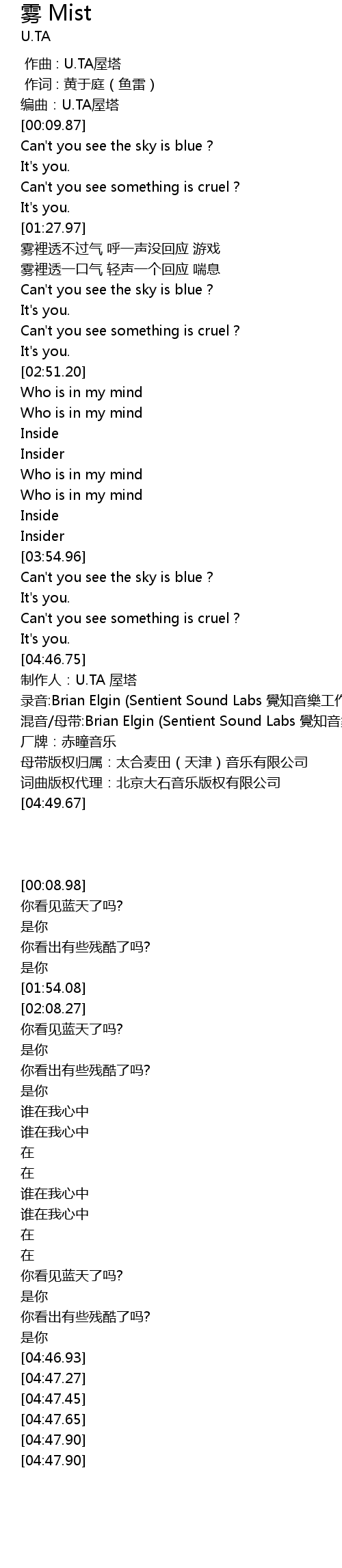 | [04:46.93] | 制作人:U.TA 屋塔 |