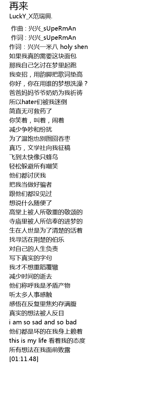 | [00:01.000] | 作词 : 兴兴_sUpeRmAn |