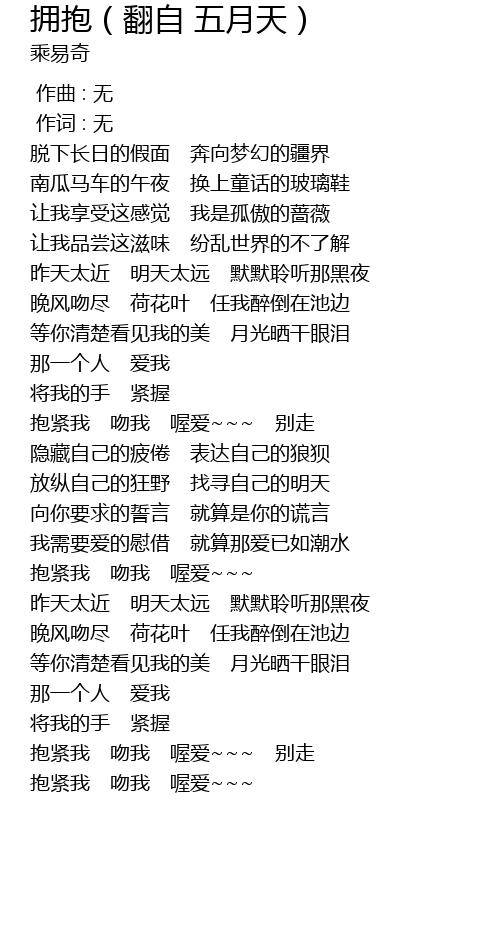 | [02:34.999] | 抱紧我 吻我 喔爱~~~ 别走 |