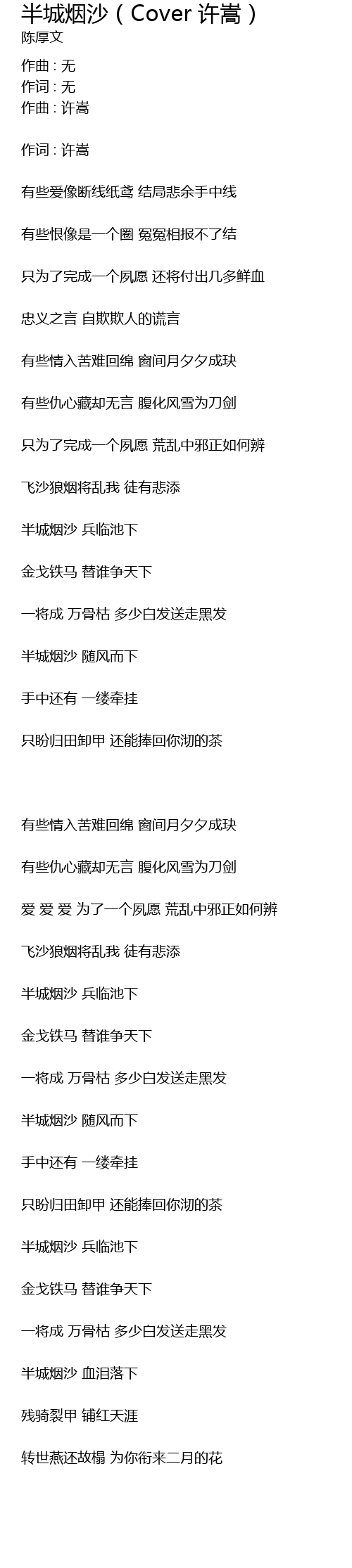 | 飞沙狼烟将乱我 徒有悲添 | |