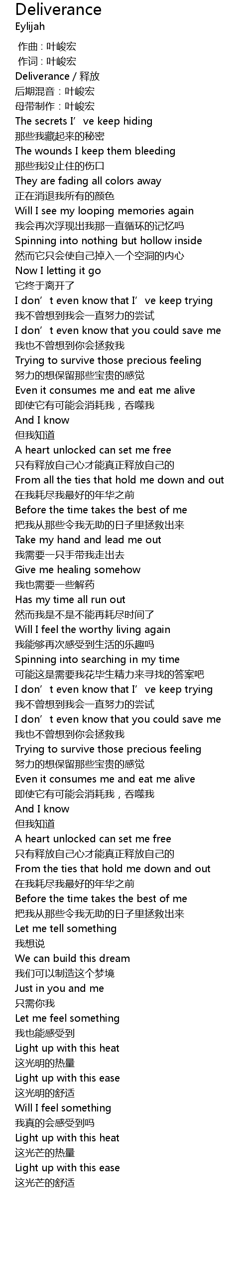 | [00:03.588] | Deliverance/释放 |