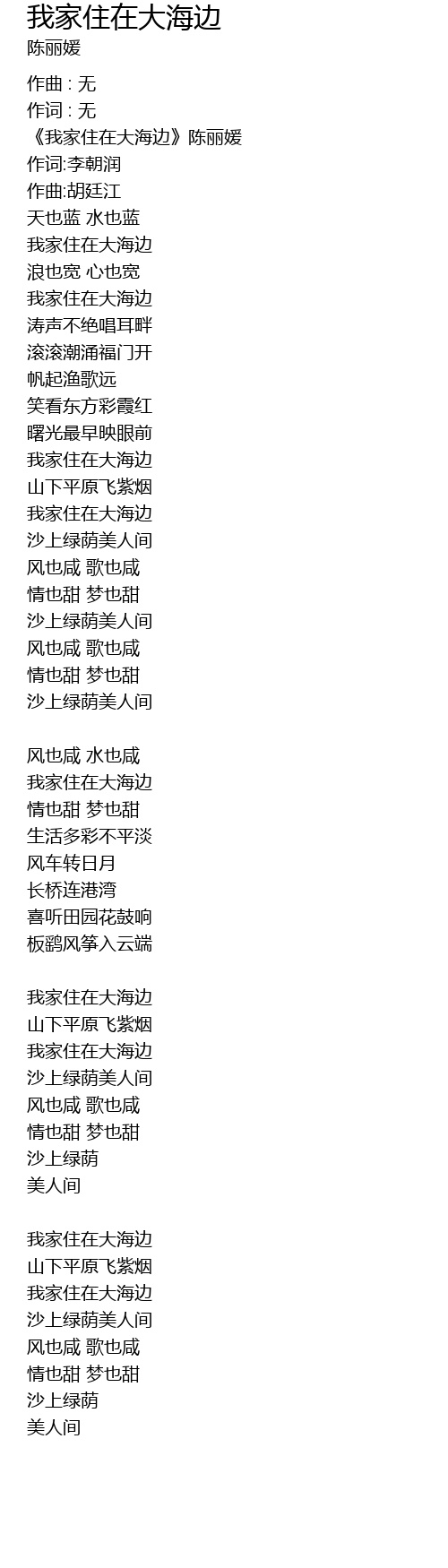 | wǒ jiā zhù zài dà hǎi biān chén lì yuàn | |