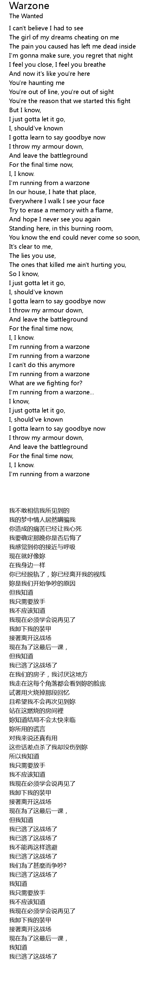 I'm running from a warzone |
