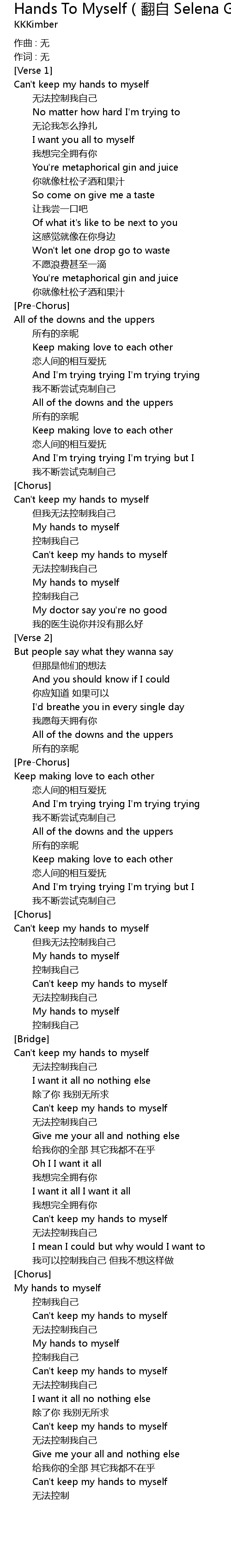 | Song | Hands To Myself(翻自 Selena Gomez) |