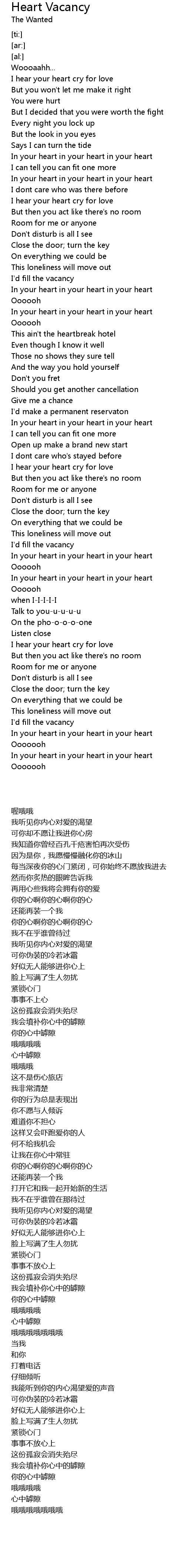 Heart Vacancy Lyrics