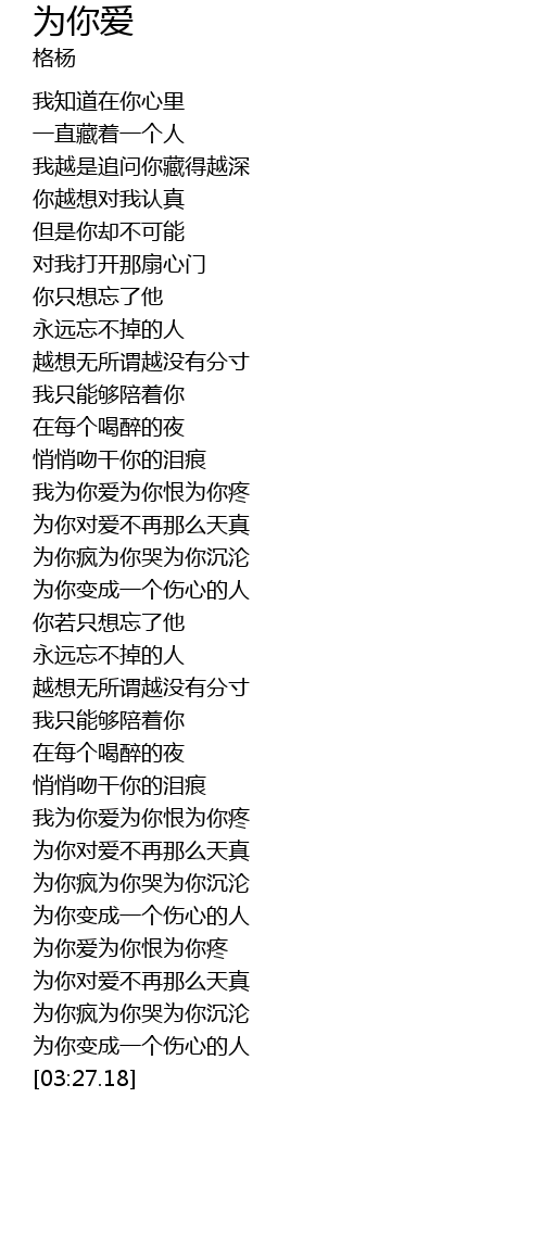 | [03:01.76] | wèi nǐ ài wèi nǐ hèn wèi nǐ téng |