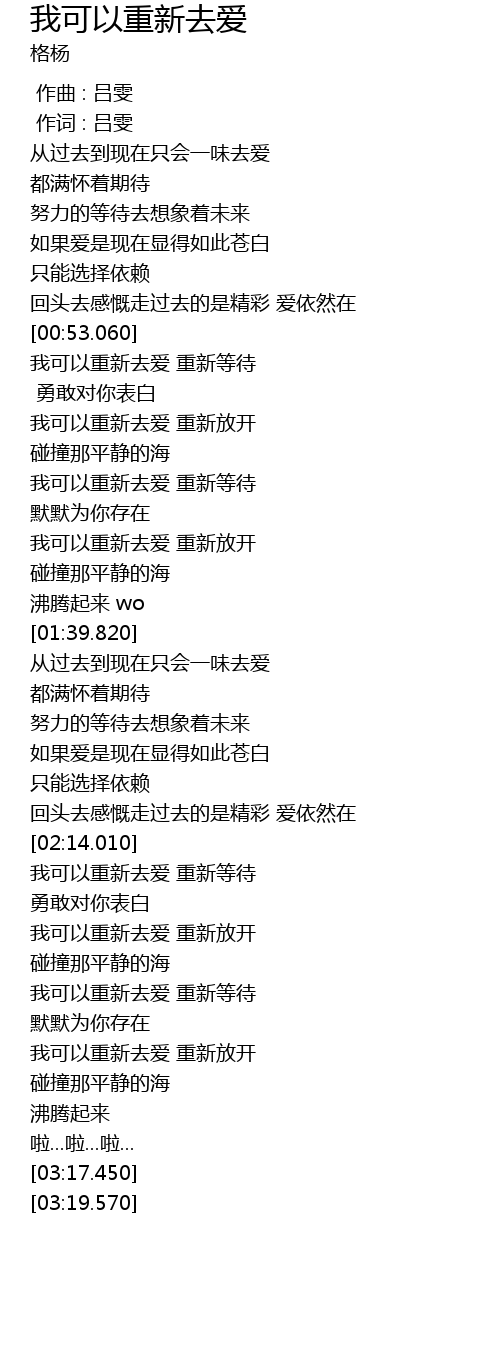 | [00:53.380] | 我可以重新去爱 重新等待 |