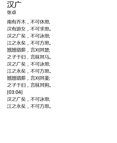 | [01:01] | hàn yǒu yóu nǚ, bù kě qiú sī. |