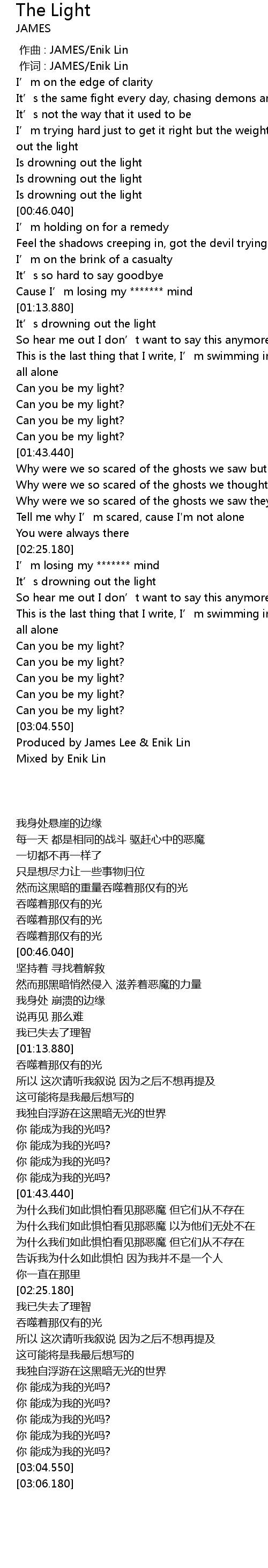 | [00:00.326] | zuò cí : JAMES Enik Lin |