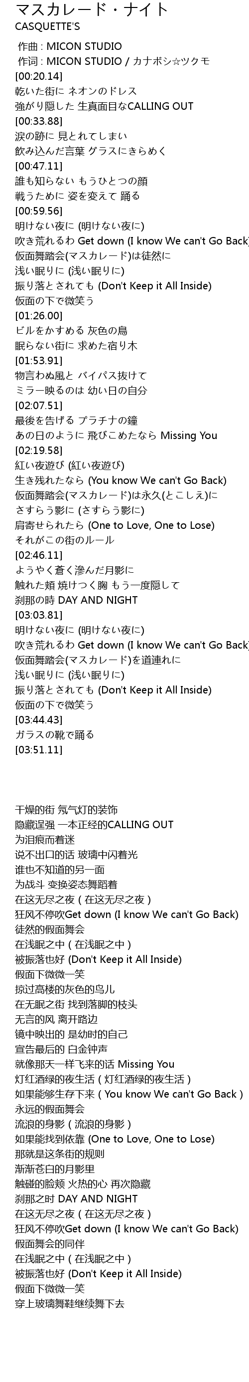 | [03:25.77] | 仮面舞踏会(マスカレード)を道連れに |