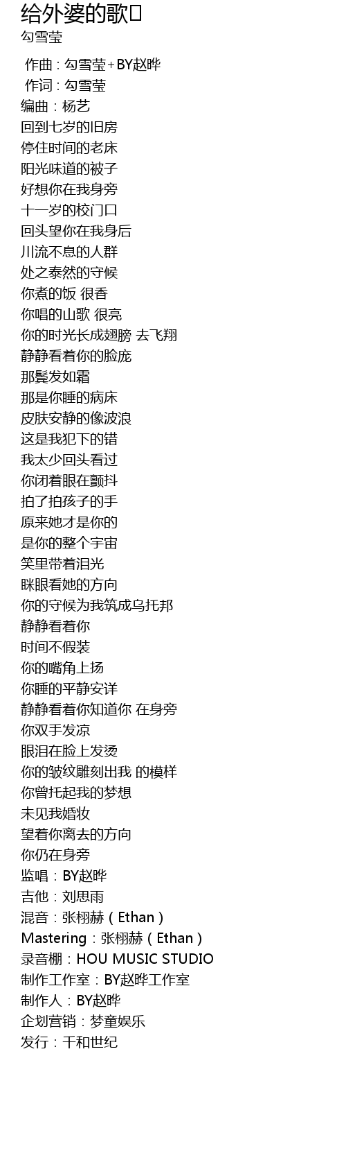 | [00:00.000] | 作曲 : 勾雪莹+BY赵晔 |