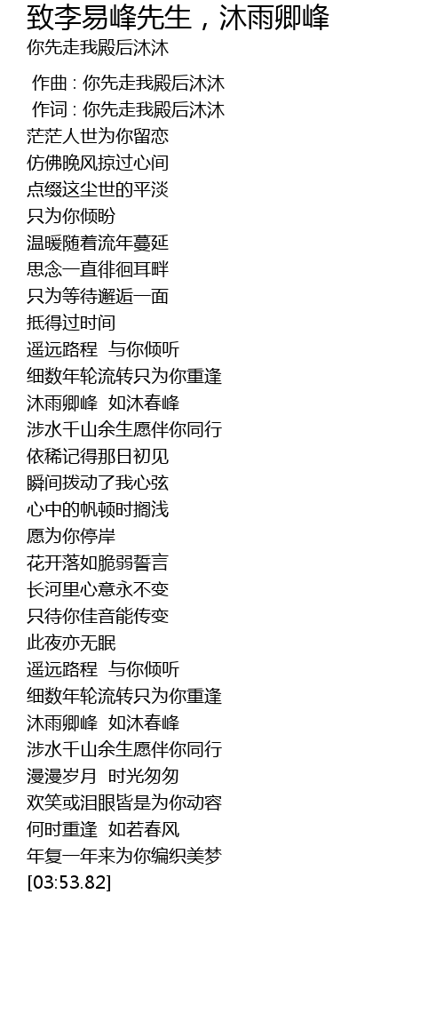 | [00:00.000] | 作曲 : 你先走我殿后沐沐 |