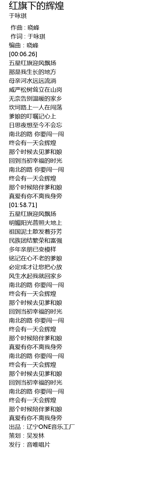 | [02:00.55] | 五星红旗迎风飘扬 |