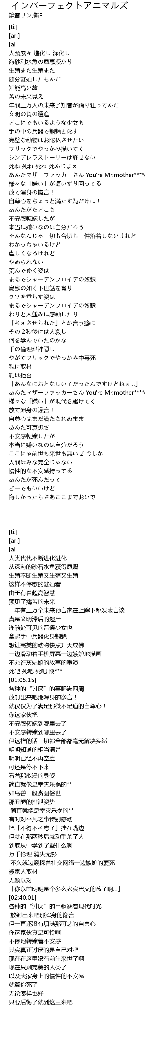 | [02:41.71] | 様々な「嫌い」が現代を駆けてく |
