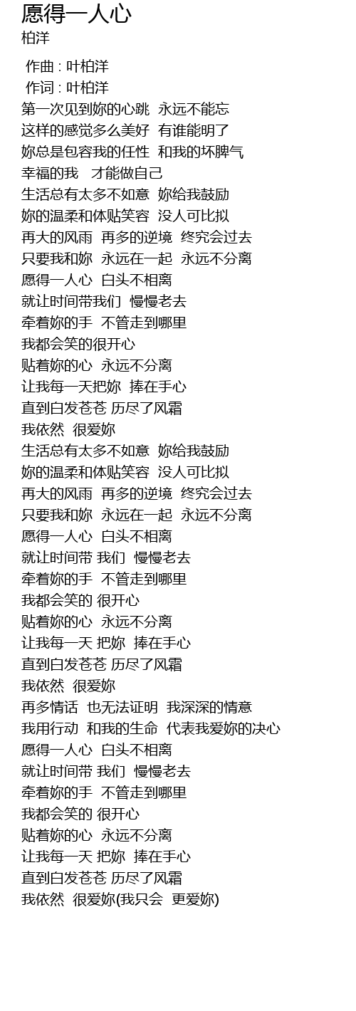 | [03:20.05] | 愿得一人心 白头不相离 |