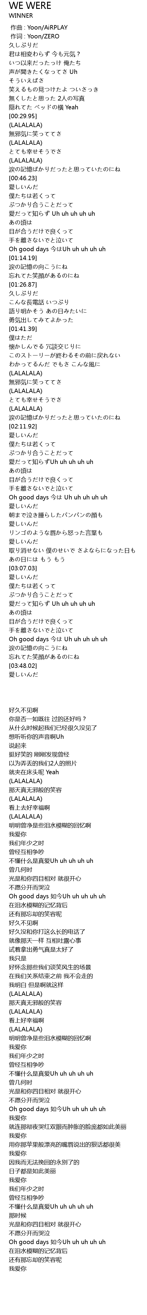 | [02:36.11] | Oh good days jīn Uh uh uh uh uh |