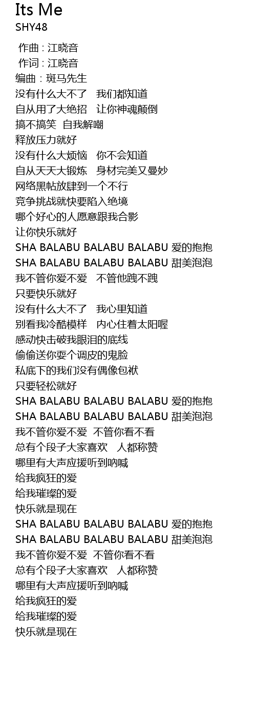 | [03:11.17] | SHA BALABU BALABU BALABU 甜美泡泡 |