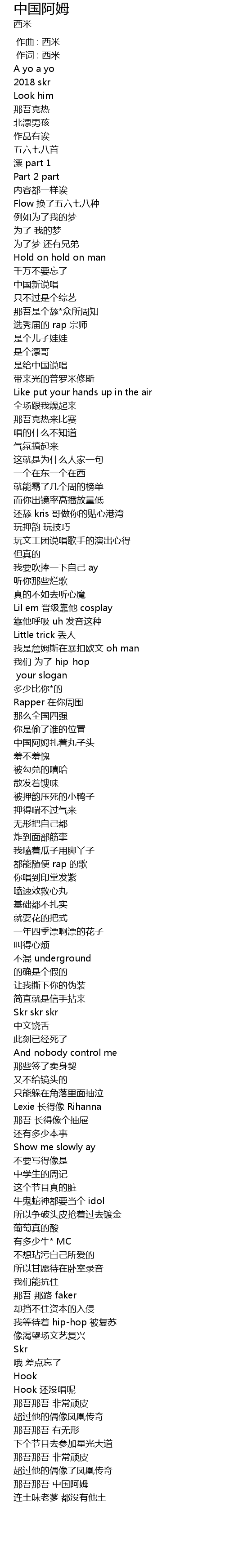 | [01:16.880] | zhōng guó ā mǔ zhā zhe wán zǐ tóu |