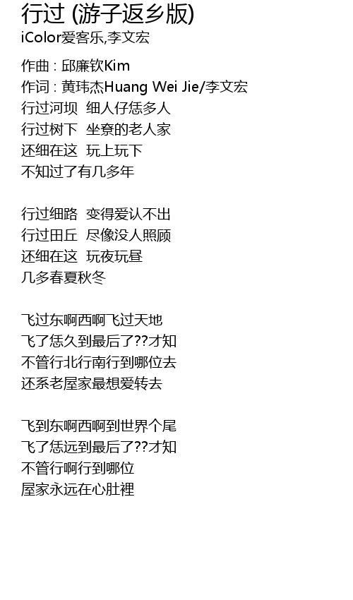 | 作词 : 黄玮杰Huang Wei Jie/李文宏 | |