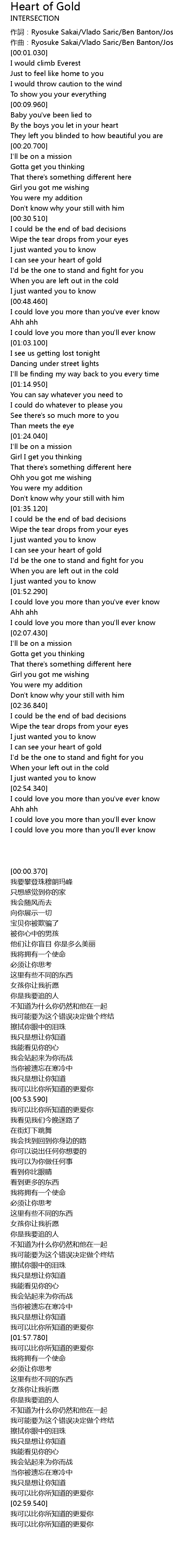 | [00:00.370] | 作詞:Ryosuke Sakai/Vlado Saric/Ben Banton/Josh Banton |