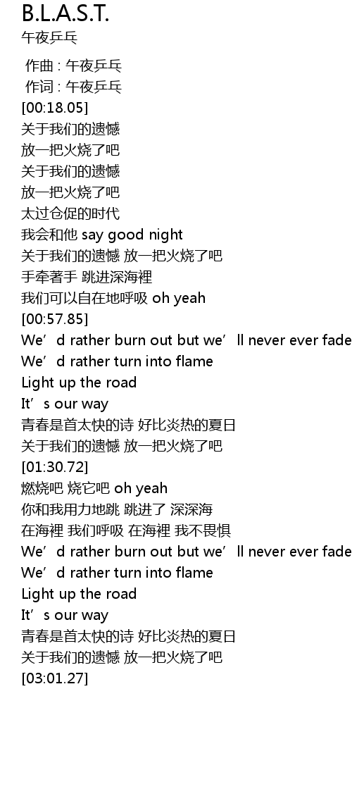 | [01:40.10] | 燃烧吧 烧它吧 oh yeah |