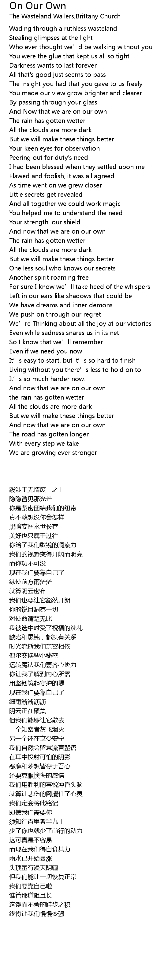 | [00:39.54] | And Now that we are on our own |