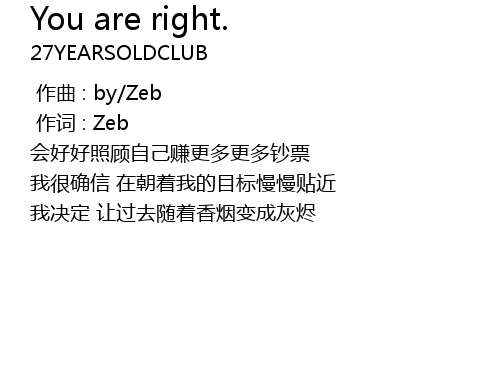 | [00:01.000] | 作词 : Zeb |