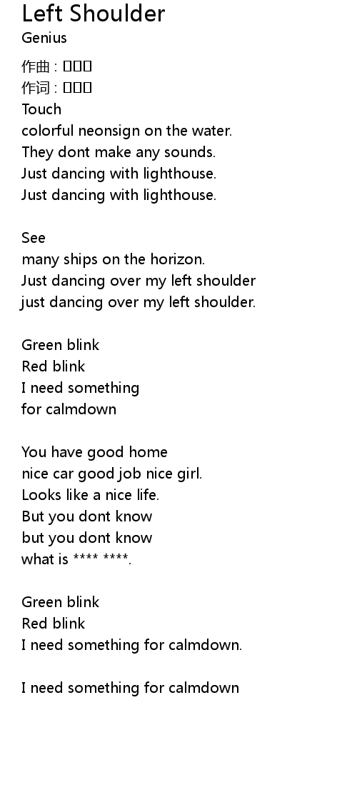 | Song | Left Shoulder |