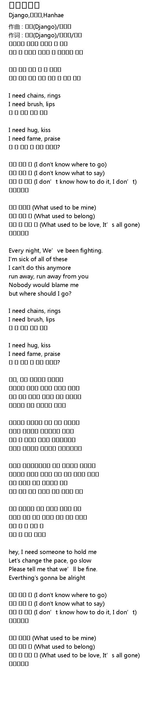 | 作词 : 쟝고(Django)/엄지희/한해 | |
