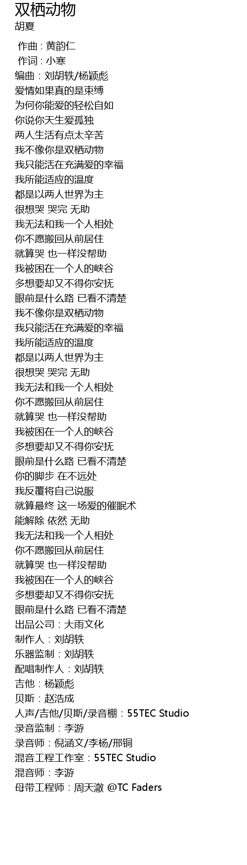 | [04:43.79] | 配唱制作人:刘胡轶 |
