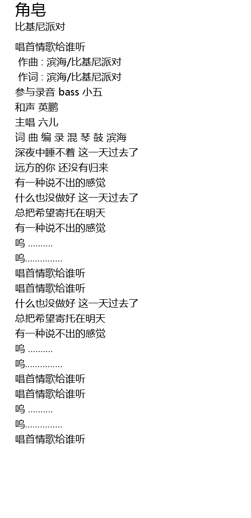 | [00:01.000] | zuo ci : bin hai bi ji ni pai dui |