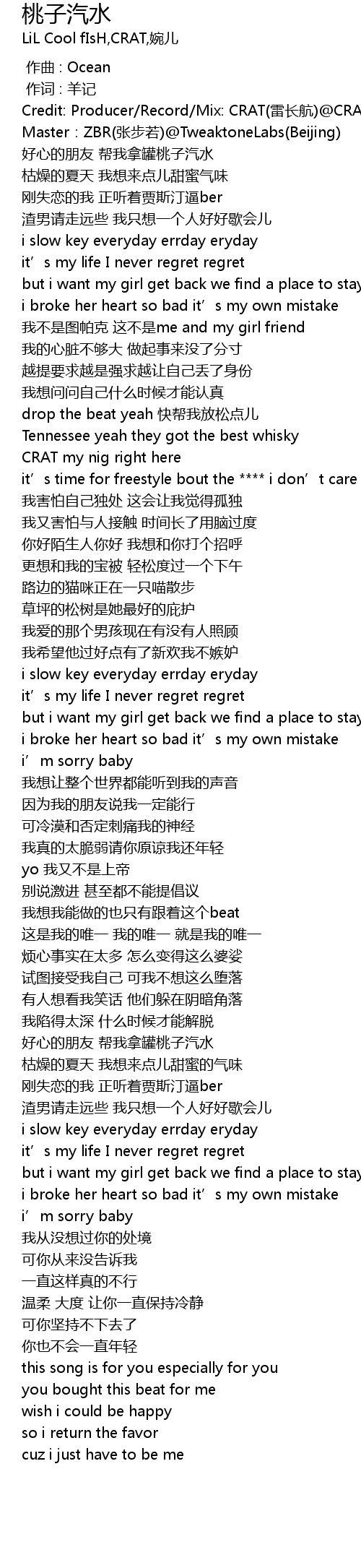 | [02:43.000] | 好心的朋友 帮我拿罐桃子汽水 |