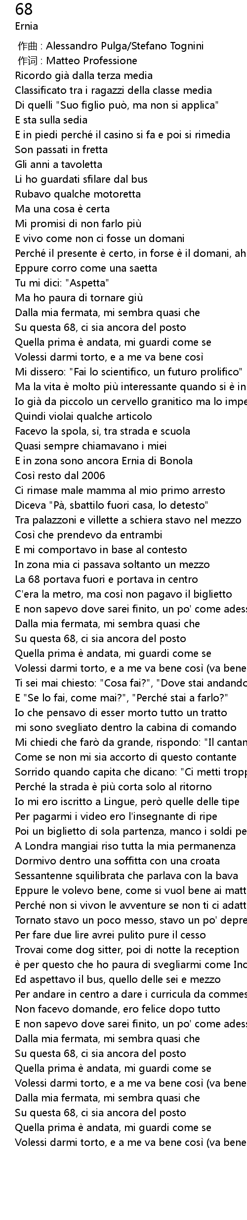 | [01:41.37] | Su questa 68, ci sia ancora del posto |