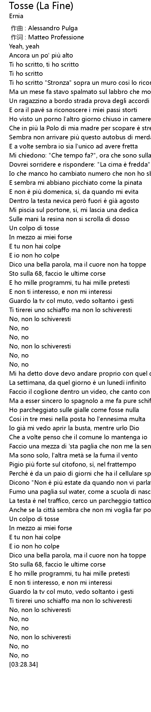 | [02:23.12] | Faccio una mezza di ' sta paglia che non me la sento |