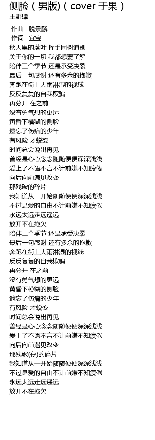 | [01:00.00] | huáng hūn xià mó hu de cè liǎn |