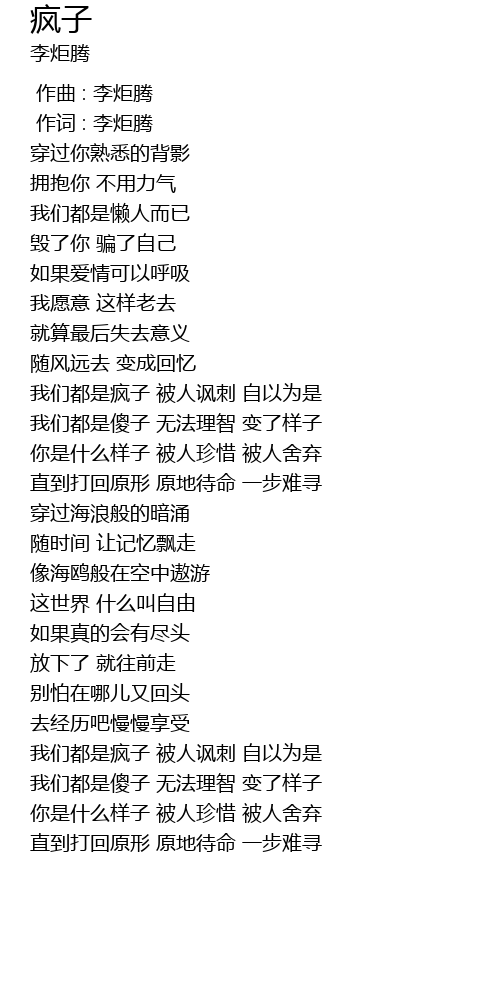 | [01:23.450] | 我们都是疯子 被人讽刺 自以为是 |