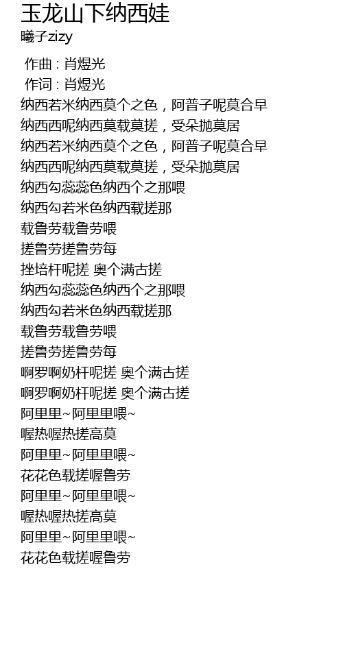 | [00:11.00] | 纳西若米纳西莫个之色,阿普子呢莫合早 |